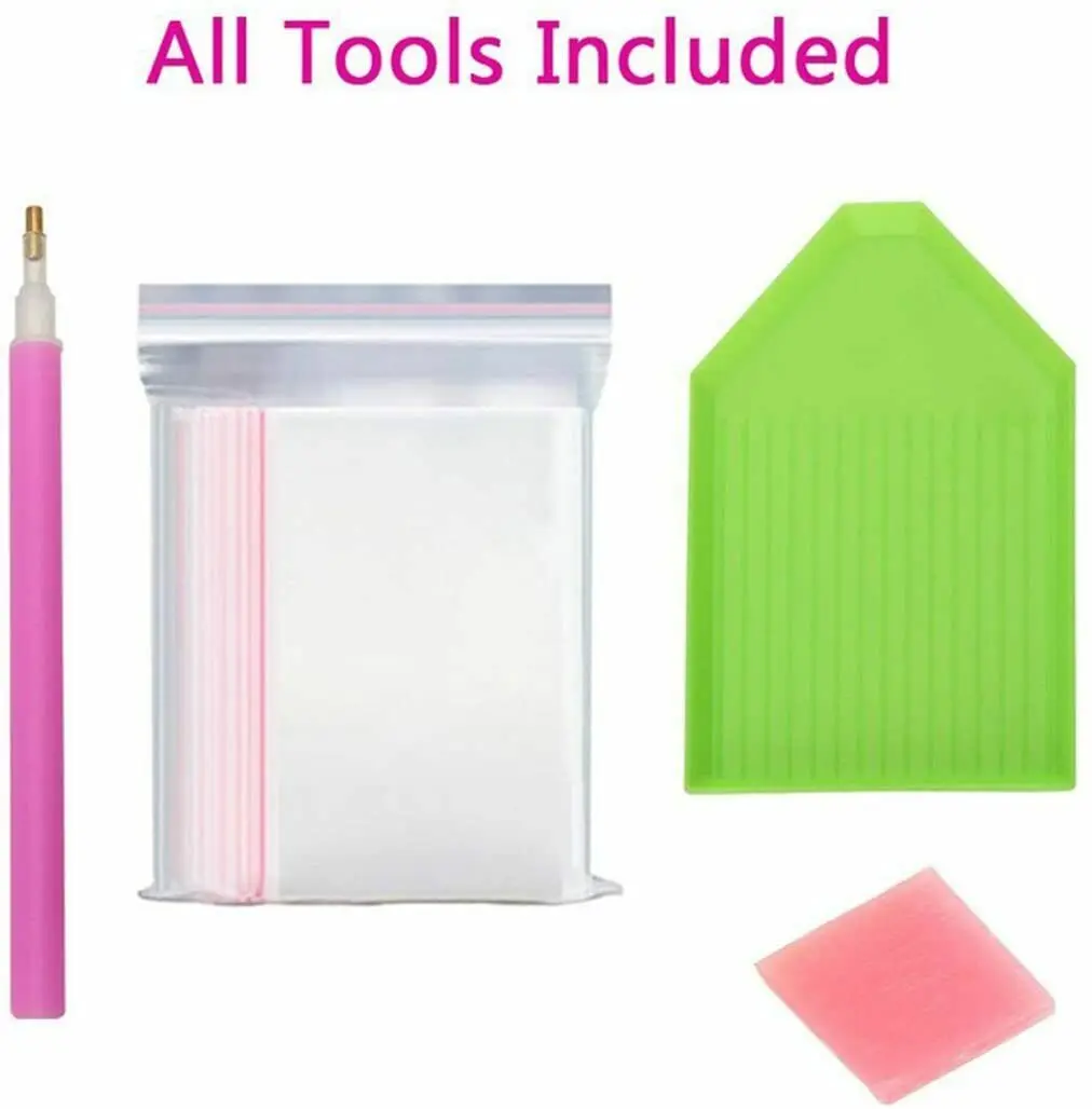 1 X Алмазная картина (стразы должны быть наклеены); 1 X Стразы-инструмент для вставки (без рамки для рисования)