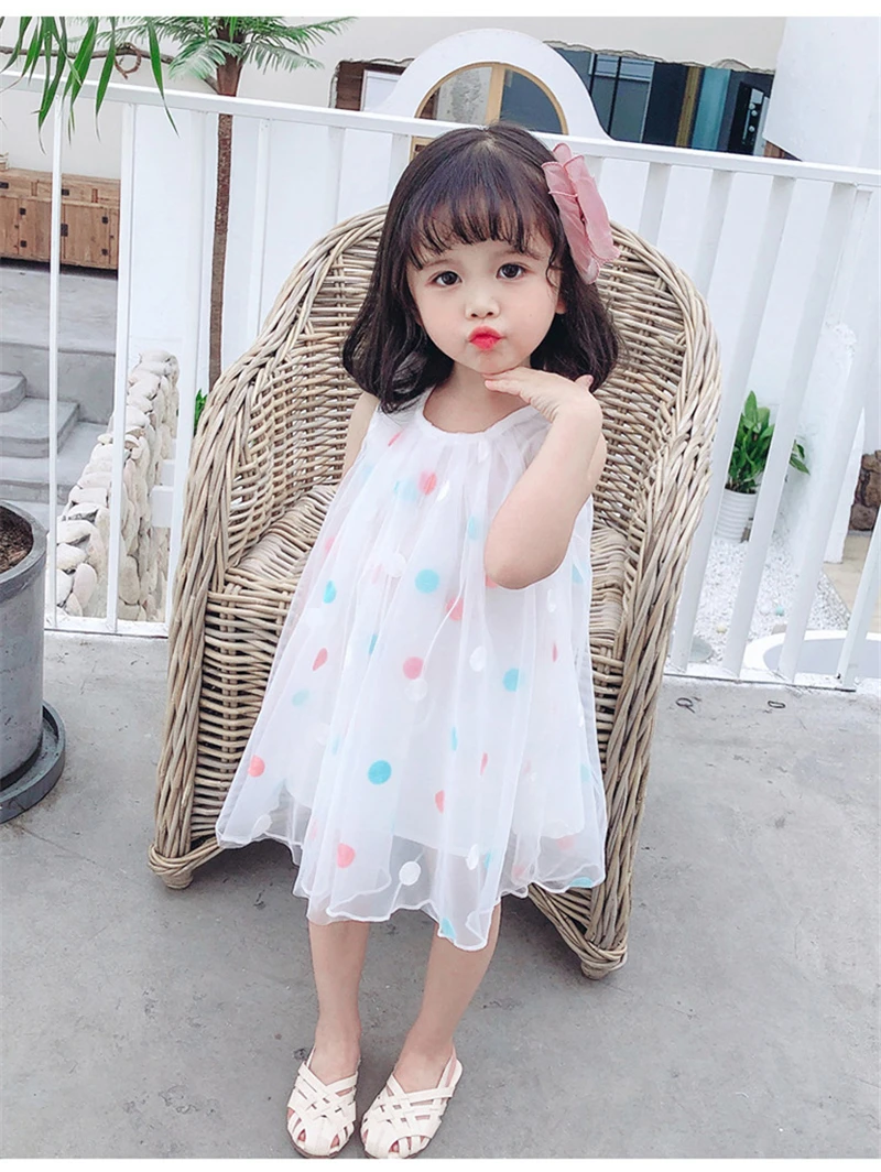 Xiao lu mao/2020 юбка из пряжи с вышивкой в горошек для девочек летнее Новое корейское платье без рукавов иностранное платье принцессы детская одежда