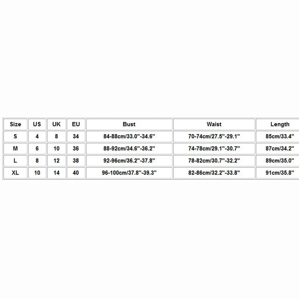 | Размер | США | Великобритания | ЕС | Бюст | Талия | Длина |