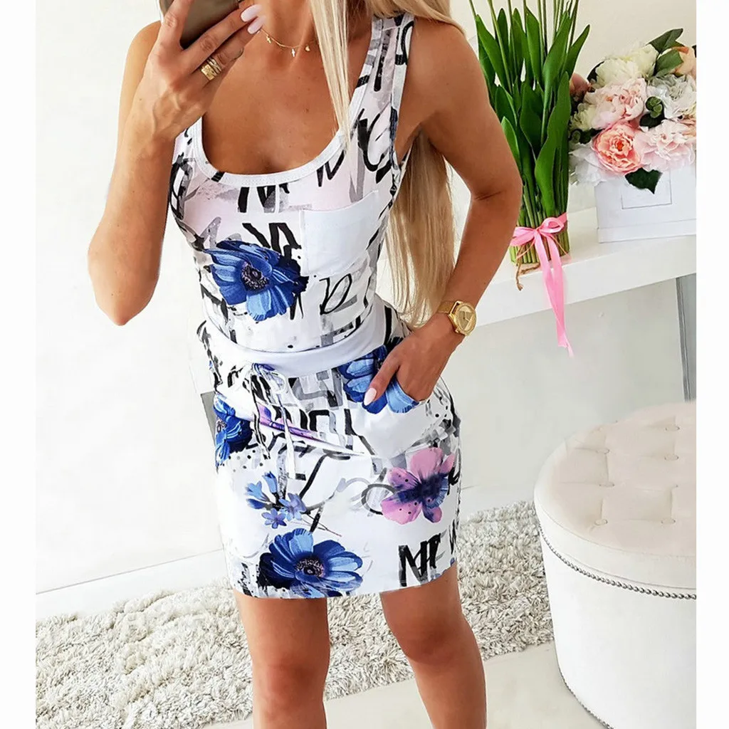 Женский Праздничный Принт с u-образным вырезом Женское летнее пляжное платье