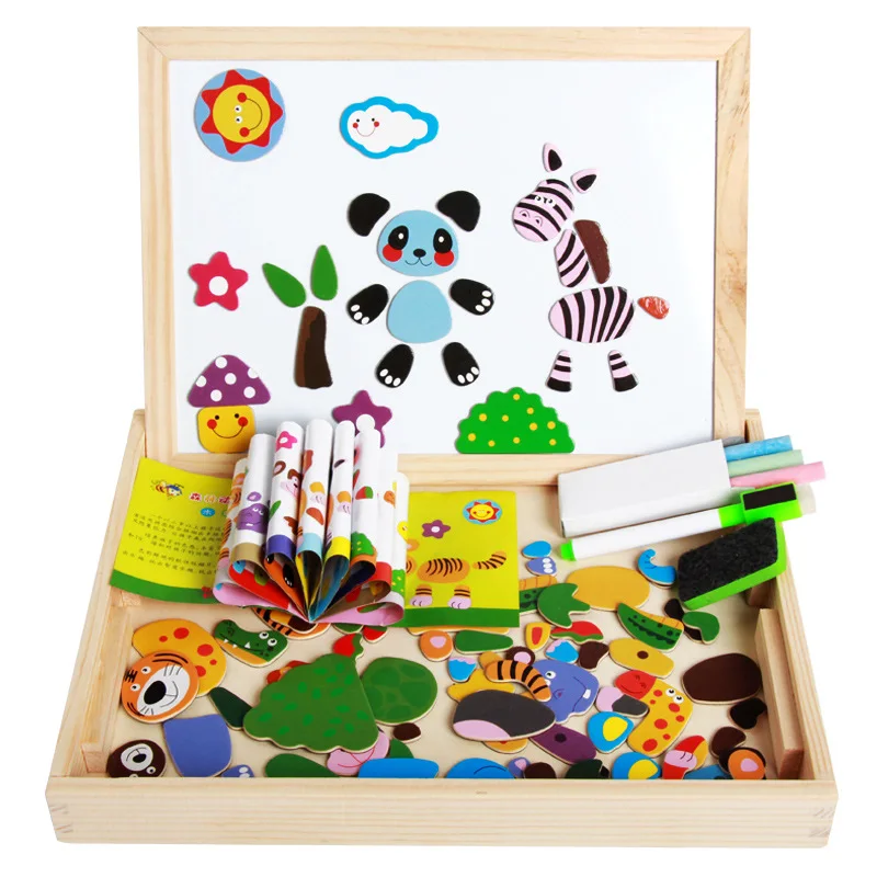 Деревянные Магнитные Головоломки Дети головоломки доска для рисования развивающие игрушки