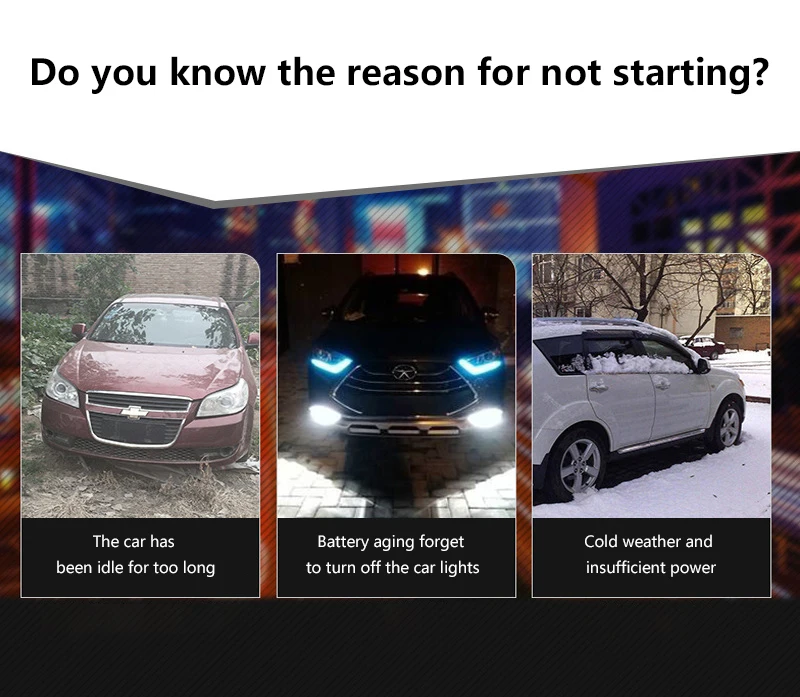 Поддержка запуска и зарядки автомобиля 12 В для различных сотовых телефонов, PSP, MP3/MP4, планшетов, смартфонов, PDA, ноутбуков и ноутбуков.