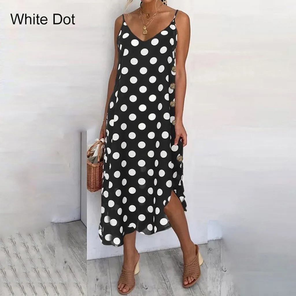 Jaycosin Women's Dress Summer Sexy Low Cut Dot Print Irregular Hem Striped Slim Sundress Dress Elegant Party Prom Dresses 527