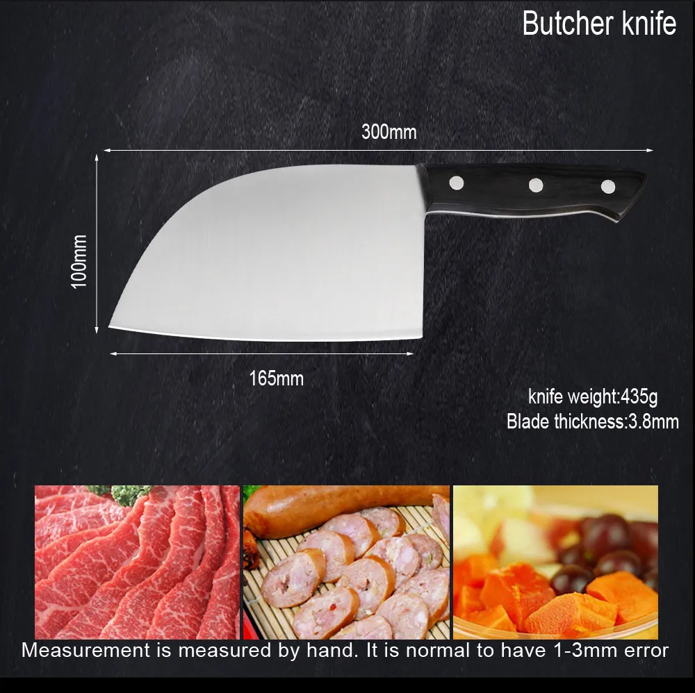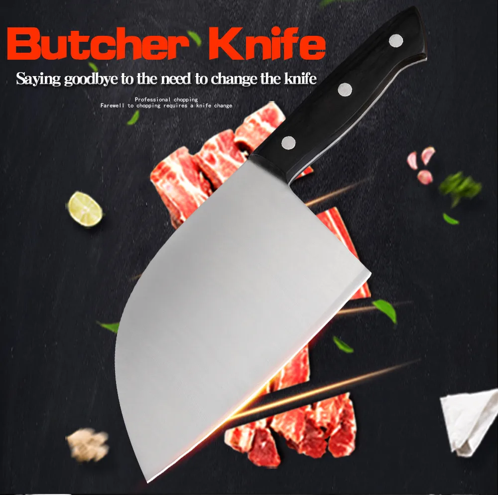 Этот нож шеф-повара мясника изготовлен из нержавеющей стали 7cr17, ручка и лезвие интегрированы без пайки, который является прочным и прочным для устранения сломанной ручки