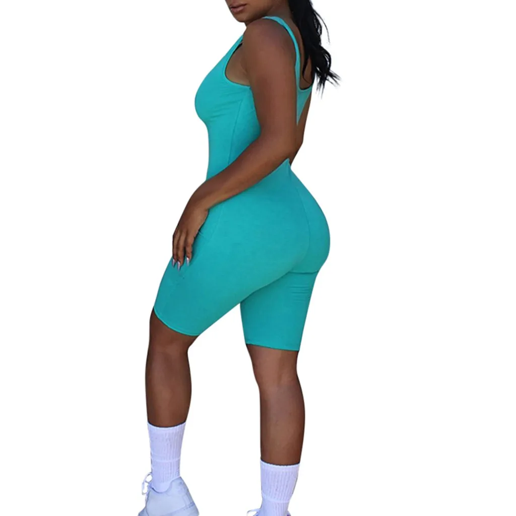 Повседневный Женский однотонный короткий комбинезон без рукавов, спортивные штаны, одежда для йоги