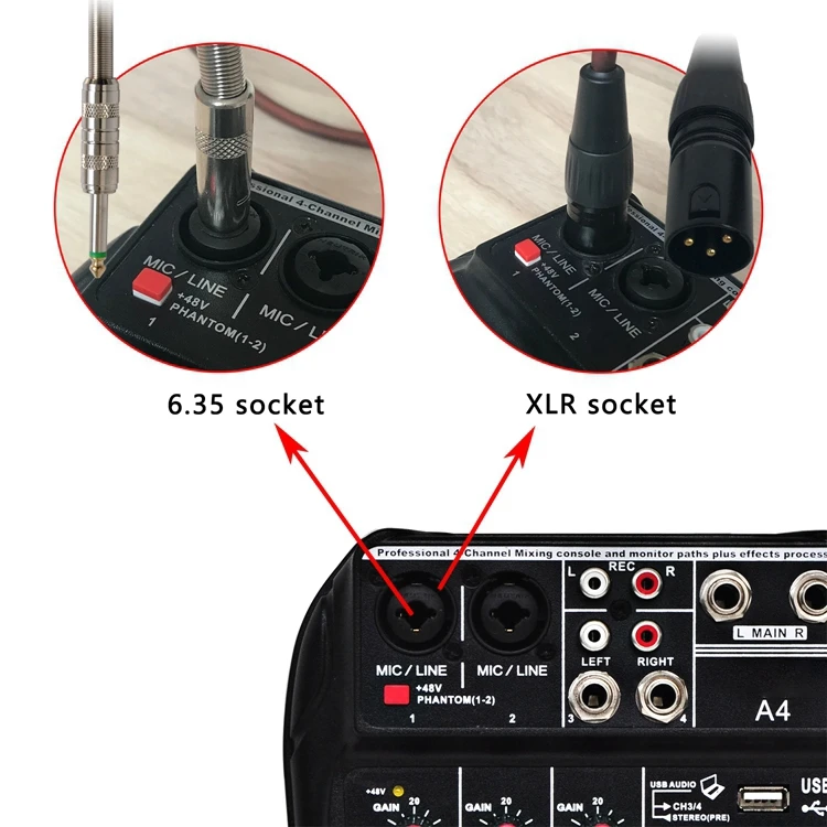ЕС разъем A4 звуковая микшерная консоль Bluetooth Usb Запись воспроизведения компьютера 48В фантомная мощность задержка Repaeat эффект 4 канала Usb Aud