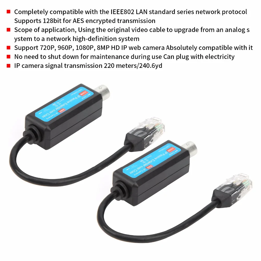 8. Передача сигнала IP-камеры 220 метров/240.6yd через коаксиальный видеокабель без блока питания, подключи и работай.