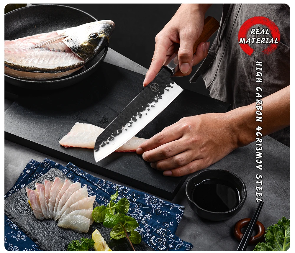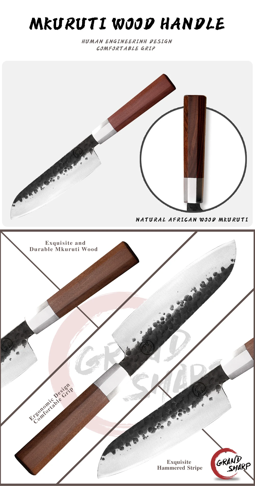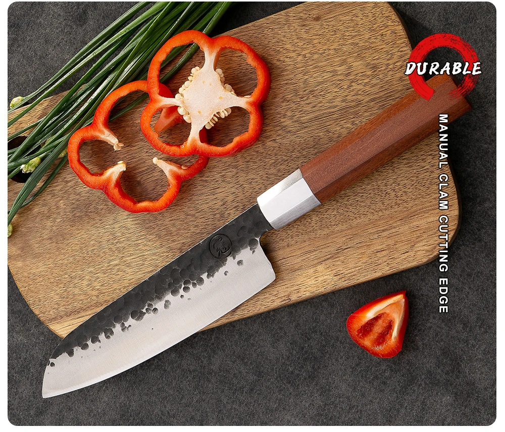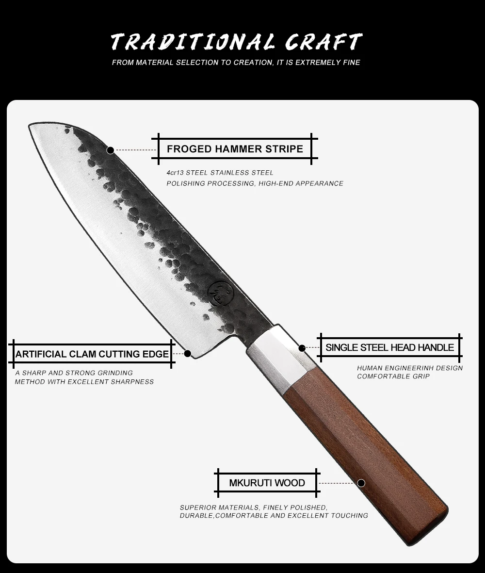 Характеристики:Материал лезвия: сталь 4cr13Материал ручки:Древесина MkurutiТвердость: 60 HRCВес нетто: 220 гПосылка включает в себя:1*7 дюймов нож Santoku Ножи1 * ножевая оболочка1 * Подарочная коробка