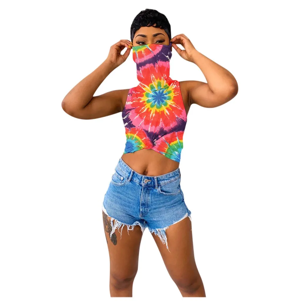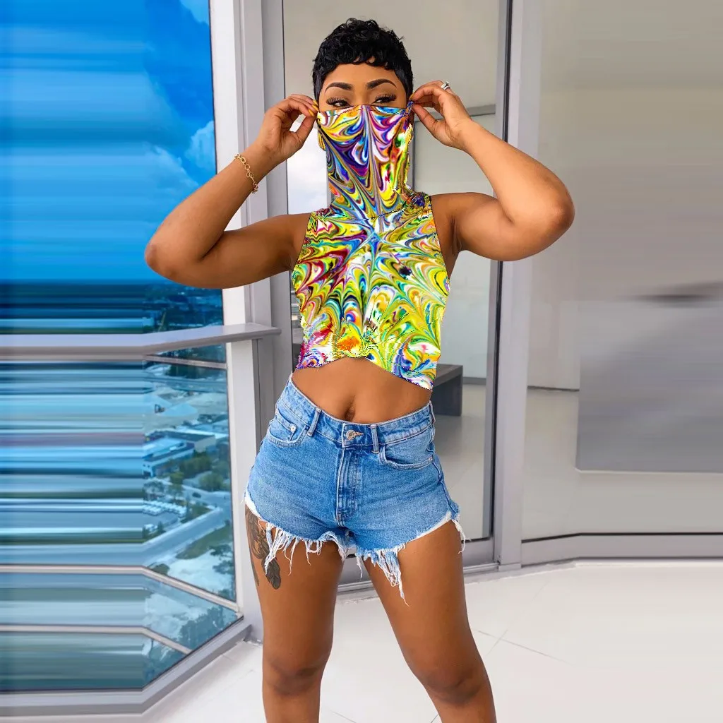 Женский укороченный топ с принтом Майка без рукавов с лицевым покрытием
