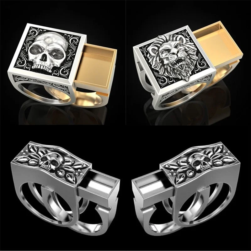 NPKDS уникальное кольцо с тайным отсеком льва черепа двухцветное Королевство льва Мемориальный гроб сувенир подарок на день рождения на годовщину кольцо