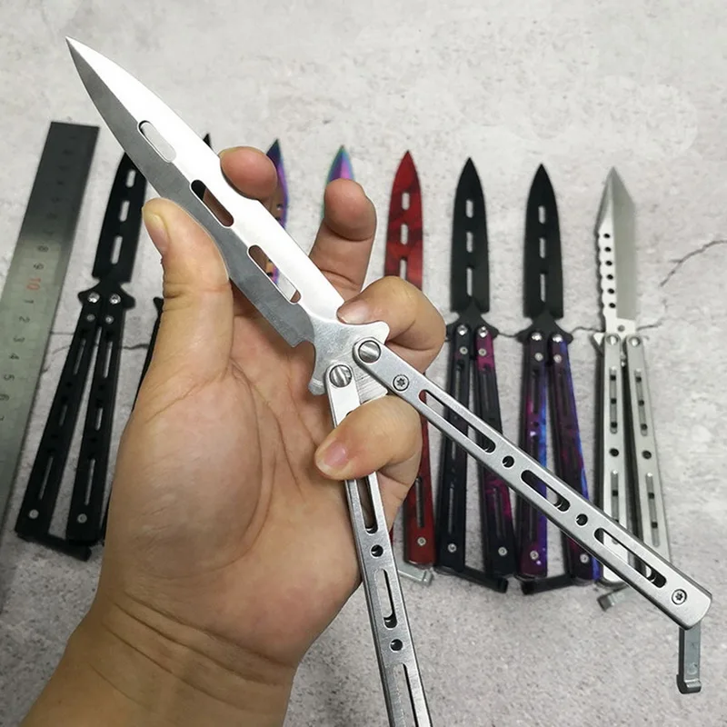 Характеристики: складной нож, тренировочный нож-бабочка, нержавеющая сталь, без края, для занятий спортом на открытом воздухе, тренировочный нож