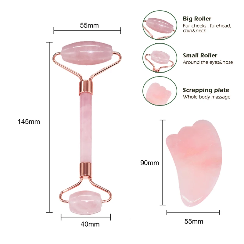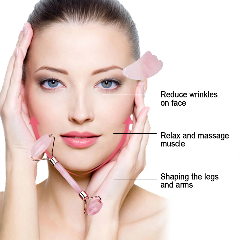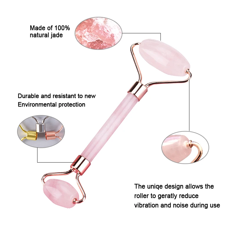 Роллер из розового кварца для массажа лица, натуральный нефрит, для лифтинга и похудения лица, для массажа, товары для красоты, набор для ухода