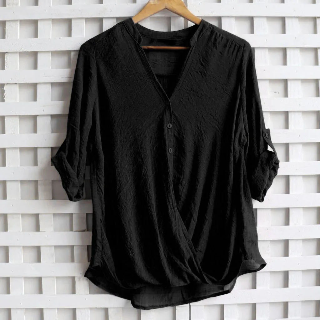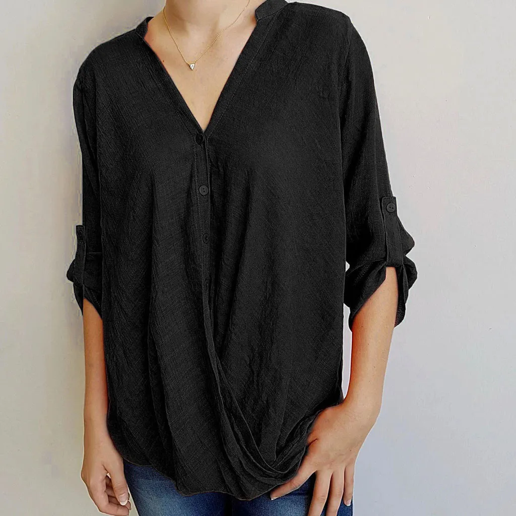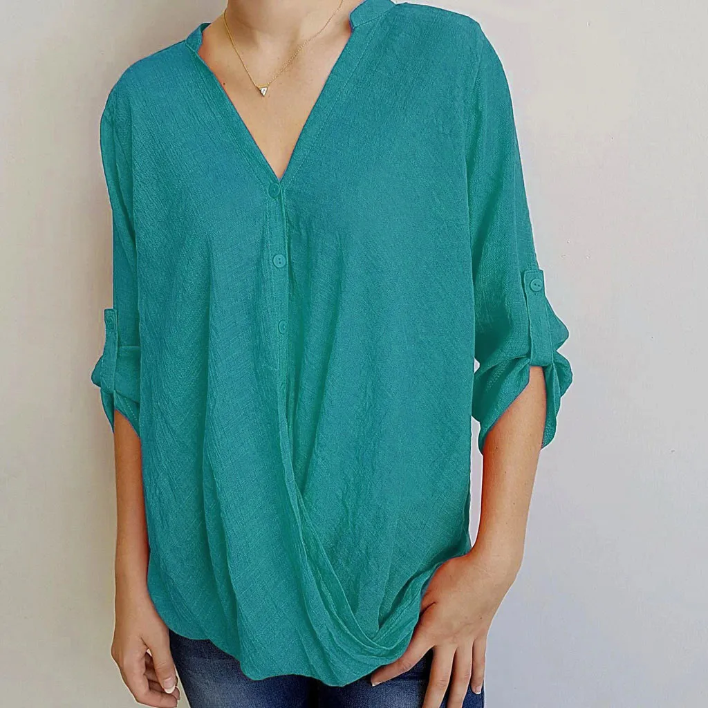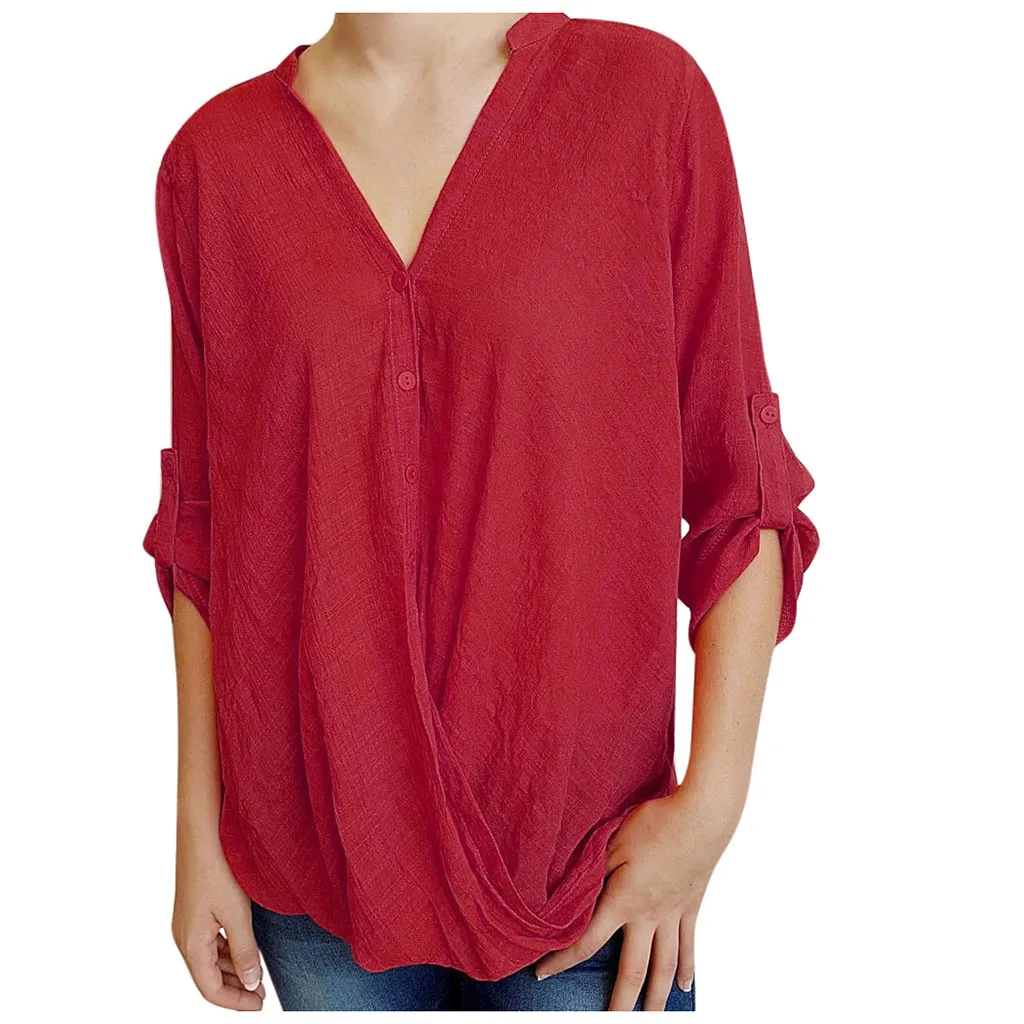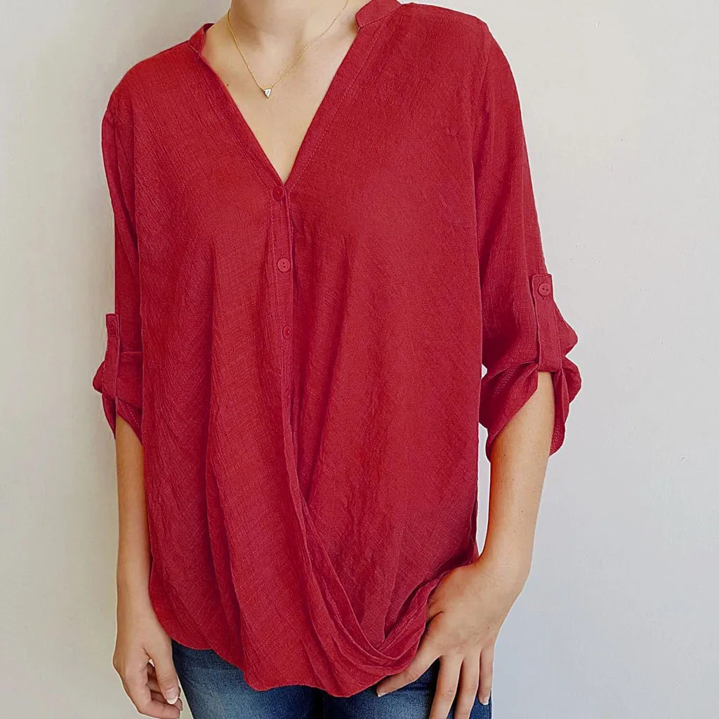 Для женщин Повседневная Свободная блузка с v-образным вырезом