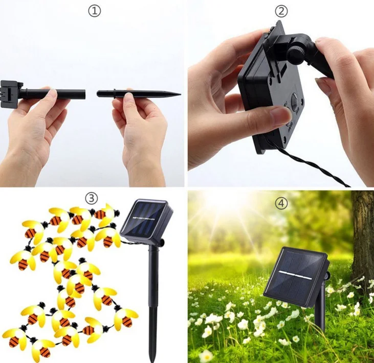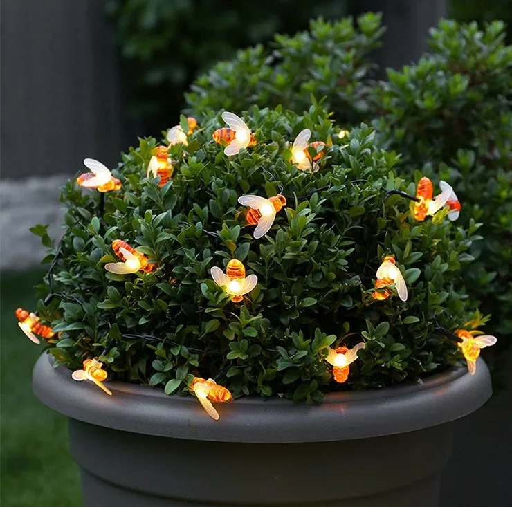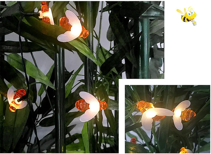 Новый милый светодиодный светильник на солнечной батарее с медовой Пчелой, 20 светодиодов, 50 светодиодов, уличный садовый забор с Пчелой, патио, Рождественская гирлянда, светильник s