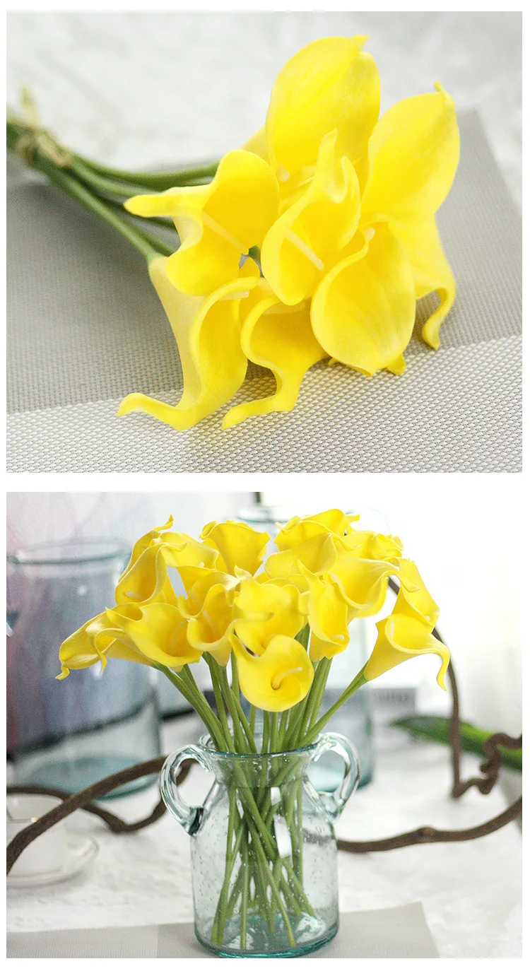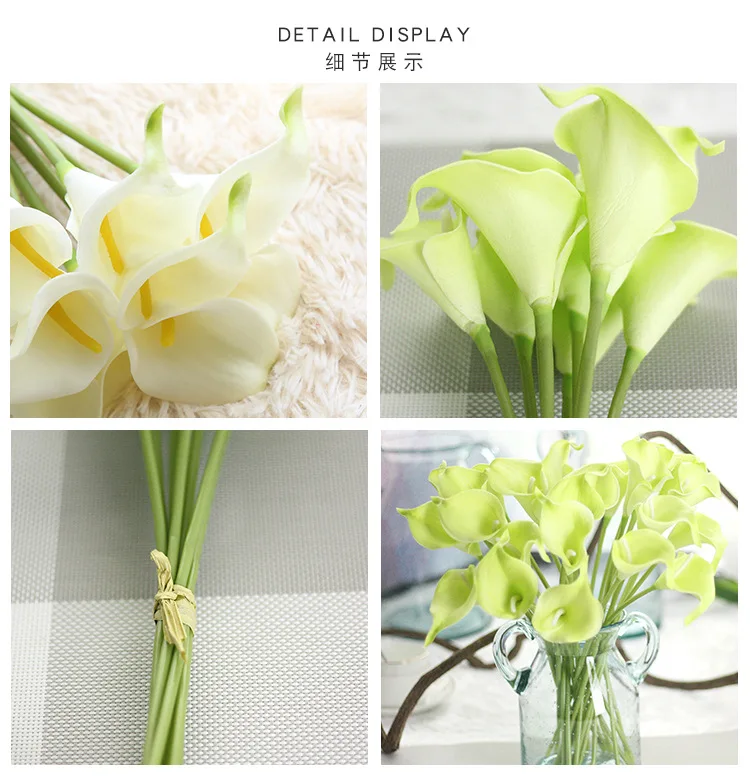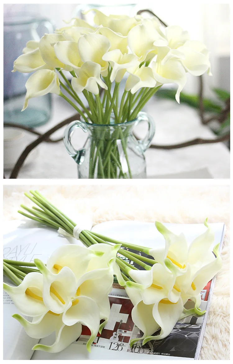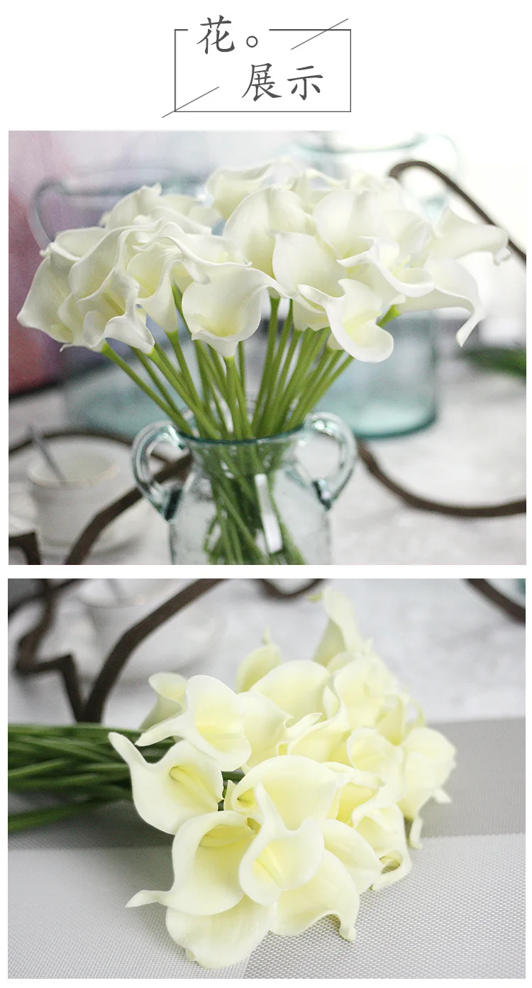 10pcs Artificial flowers PU Calla Lily Bunch wedding decorative flowers vases for home decoration accessories household products Condition: 100% Brand New & High Quality Material:pu+plastic Color: As the picture shows. Size: Single flower 7.5 cm,The whole length is about 35 cm (1cm=0.4 inch) Package includes: 1 lot=10pcs Use: birthday send flowers, celebration of send flowers, love flowers, sympathy flowers, festival of flowers, home decoration! Note: Due to different monitor and camera lights may cause slight color differences, mainly in kind of all colorserent sizes.