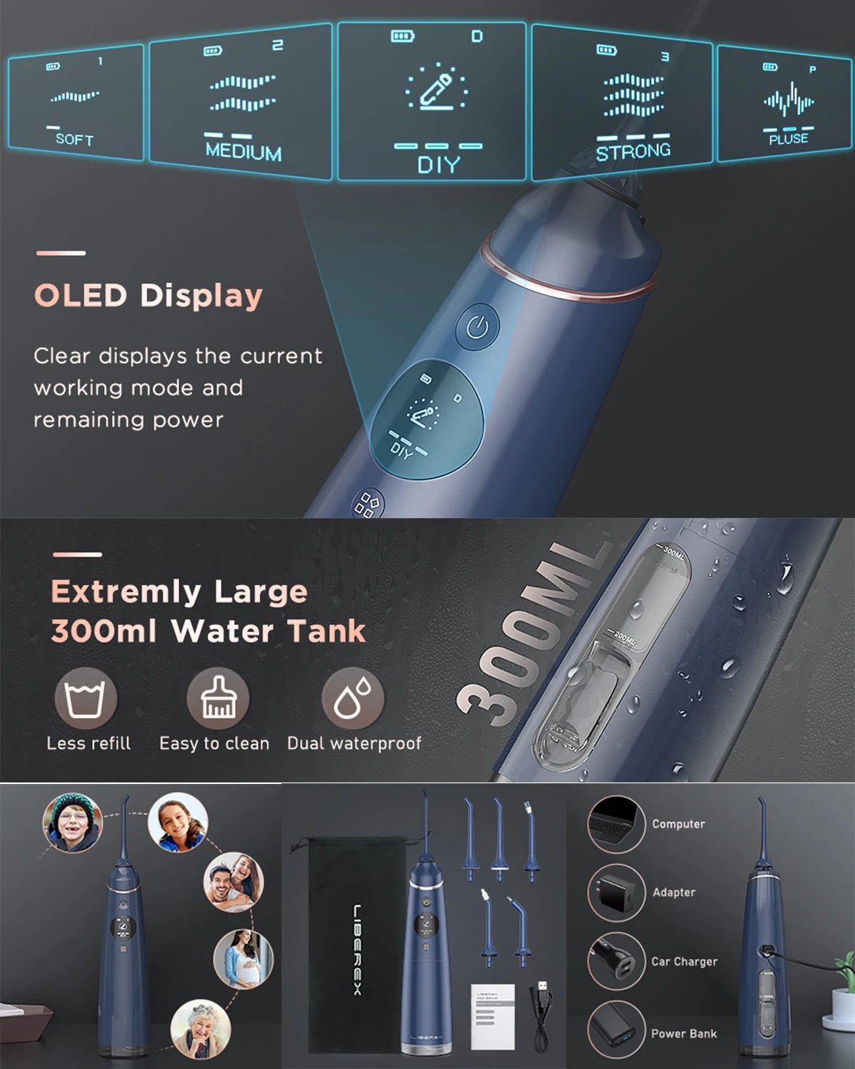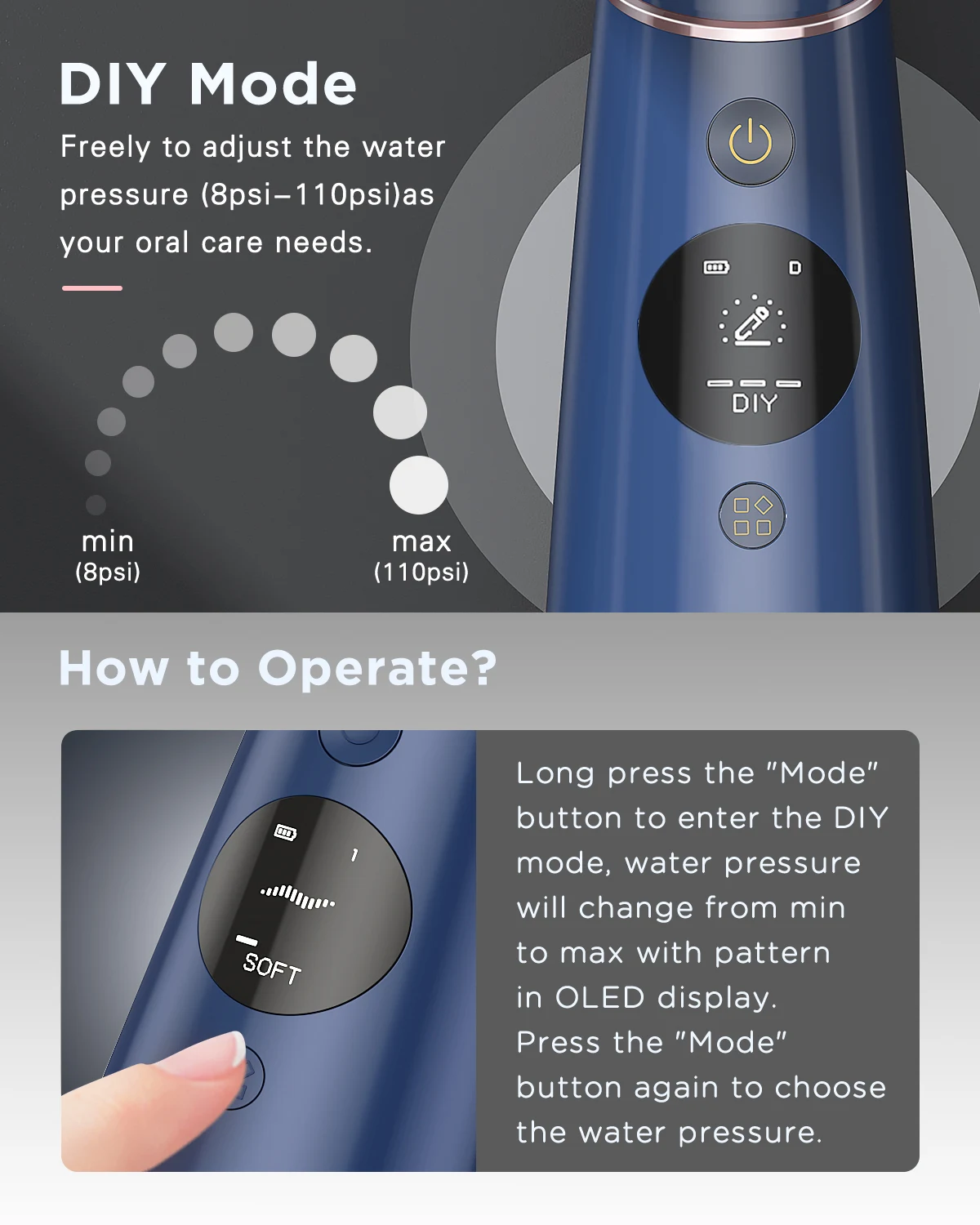 Свободно регулировать давление воды (8psi-110psi) по мере необходимости ухода за полостью рта.