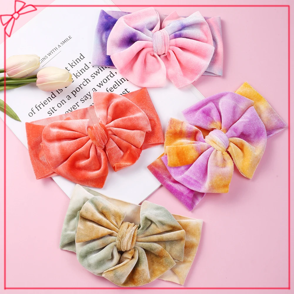 Бархатная широкая повязка на голову для маленьких девочек; Цветная повязка на голову с бантиками; Эластичная повязка на голову