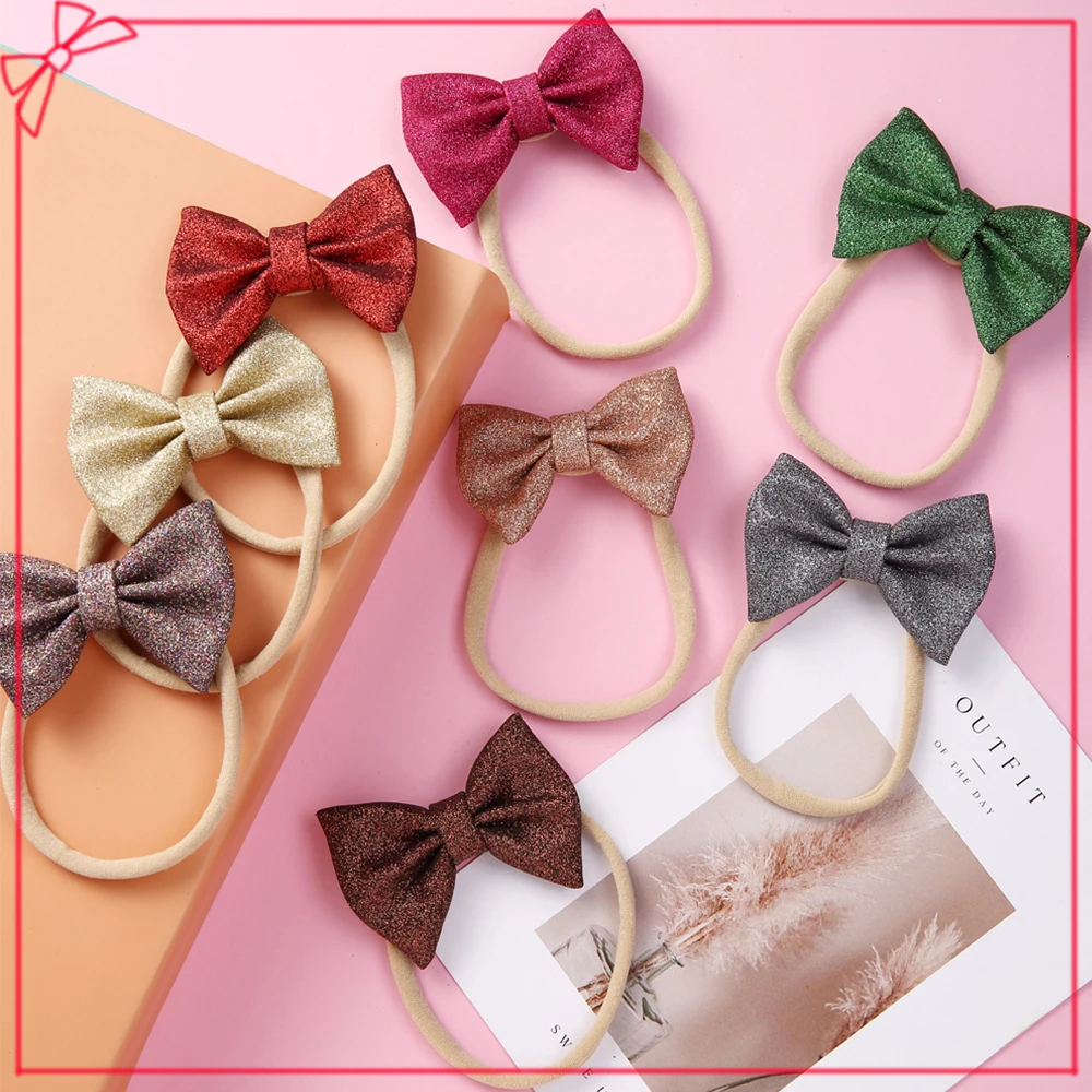 17 шт новый милый новорожденный Блестящий бант с блестками повязка на голову бант эластичная лента для волос...