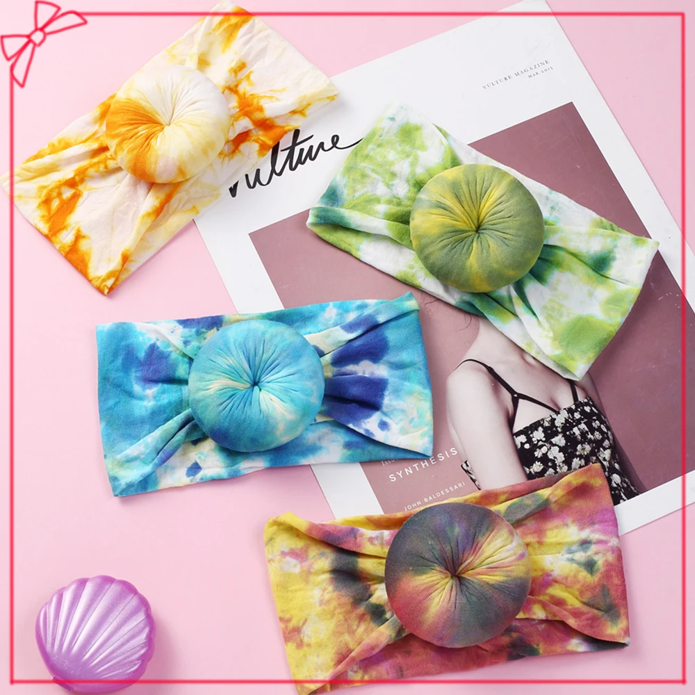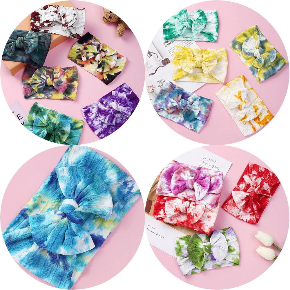 Галстук из мягкой ткани краситель нейлоновые повязки для детей девочек Печать банты детский тюрбан Вязание...