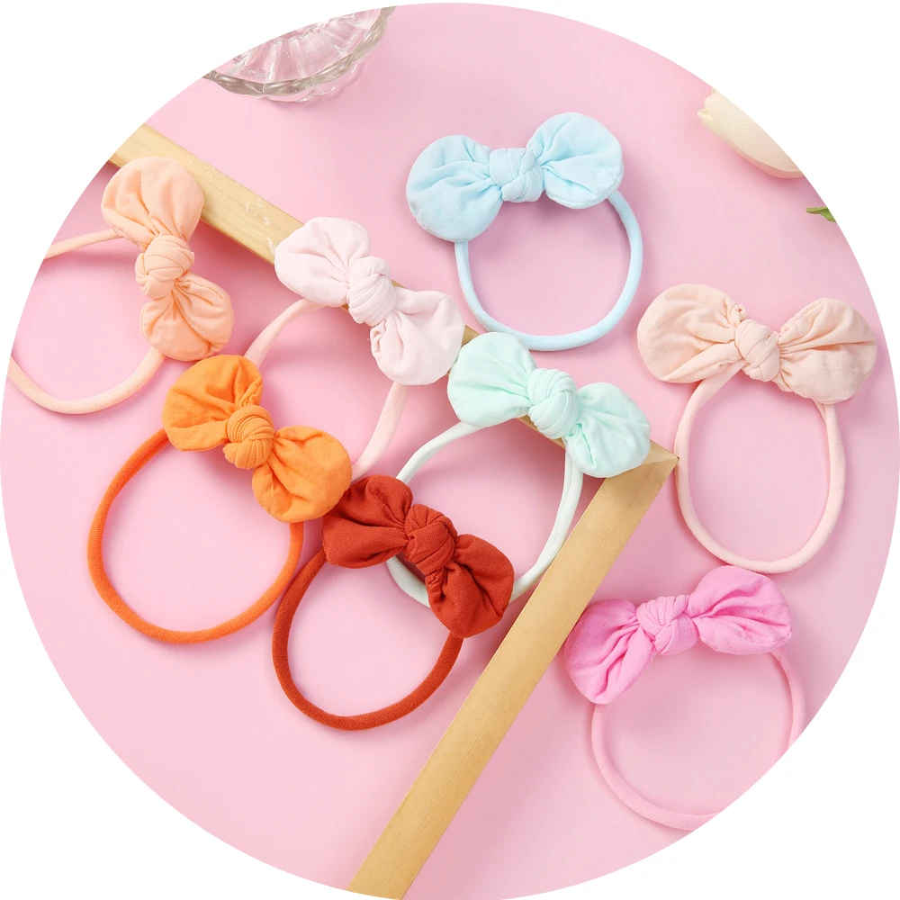 Цветочная трикотажная повязка для волос с бантиками из хлопка для девочек Горячая Распродажа Детские резинки для волос тонкие Ny...