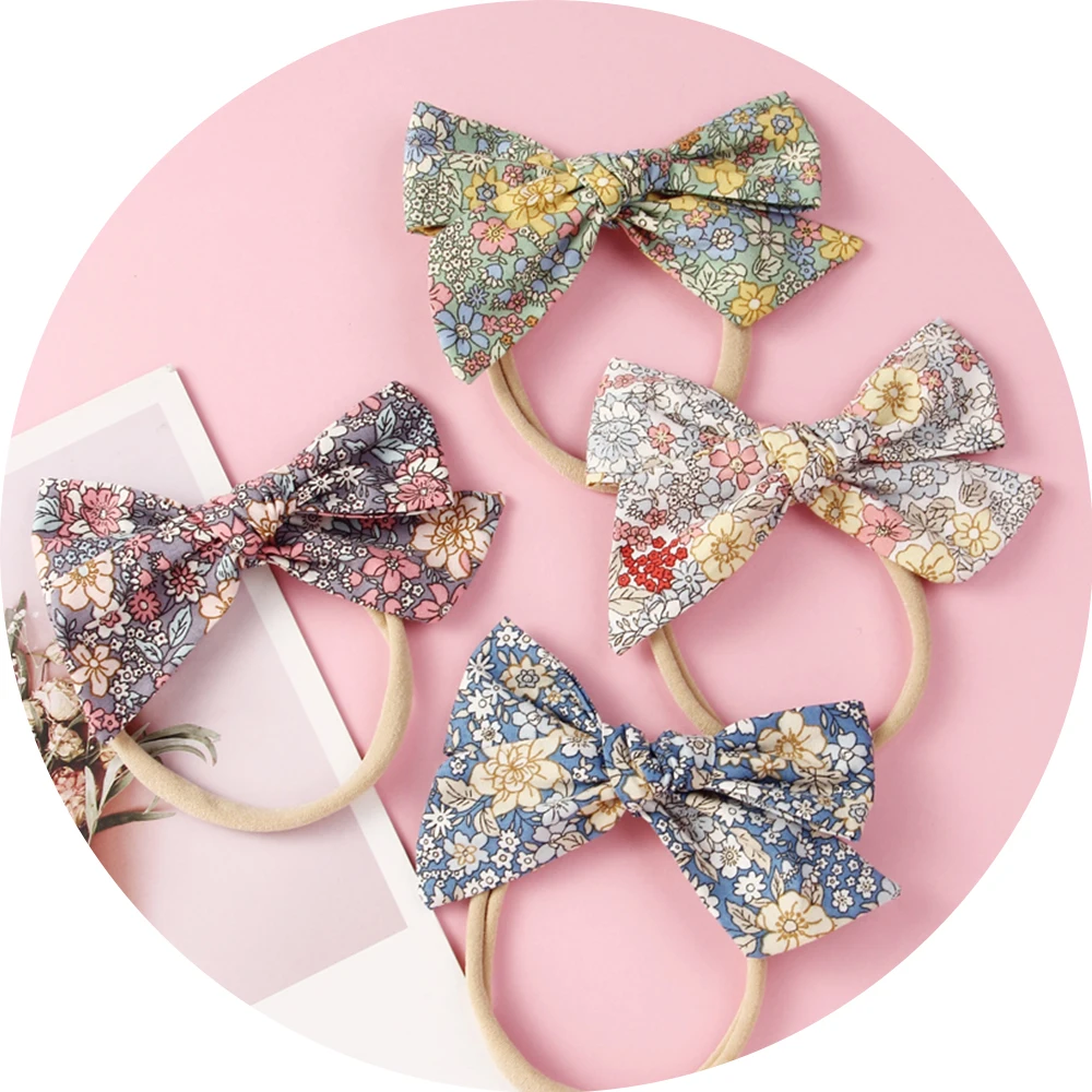 Цветочный бантик для волос, хлопок, повязка для девочек, горячая Распродажа, Детские резинки для волос, тонкий нейлоновый головной убор...