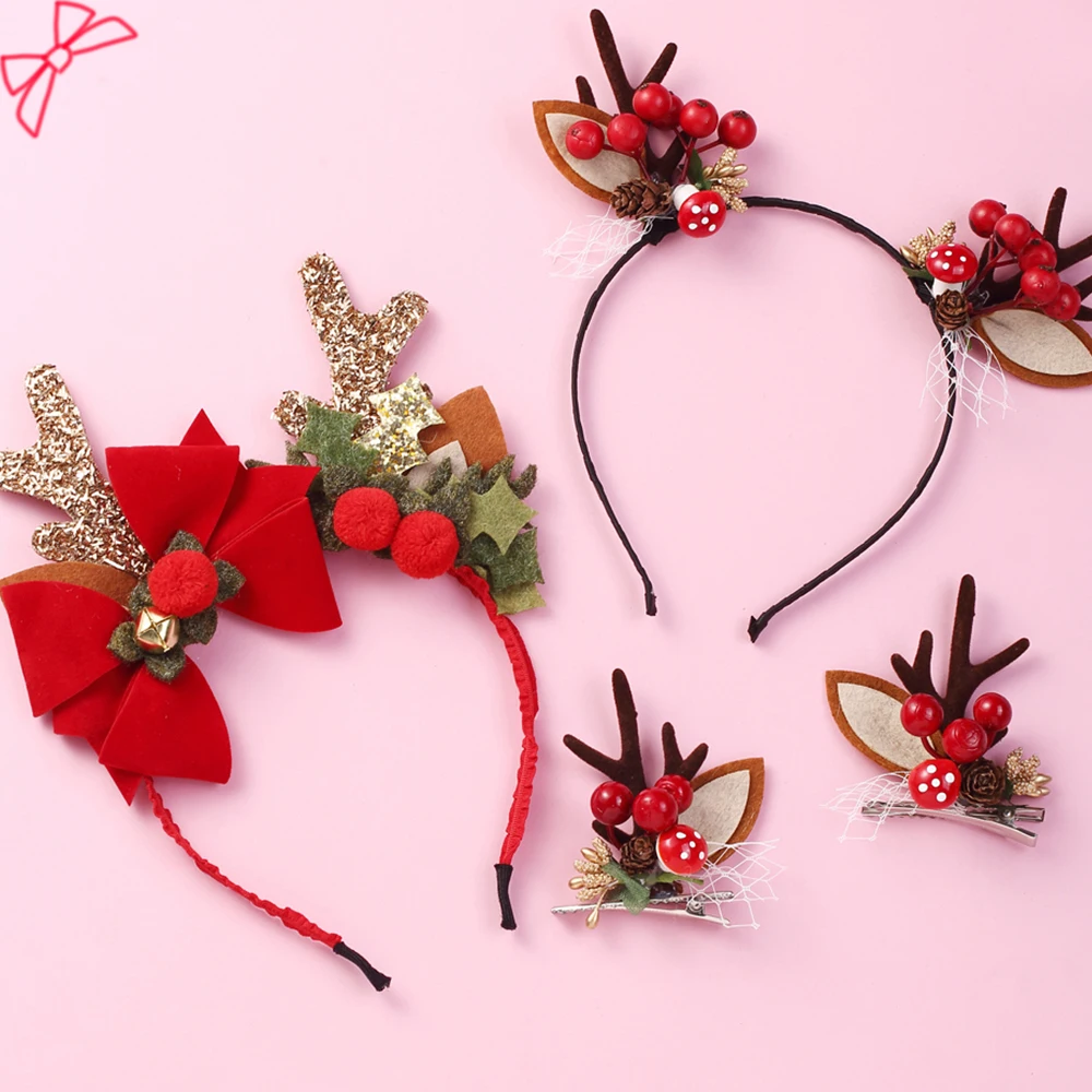 Рождественские повязки Санта-елка лося обруч на голову с рогами детский зажим для волос женщина головной убор...
