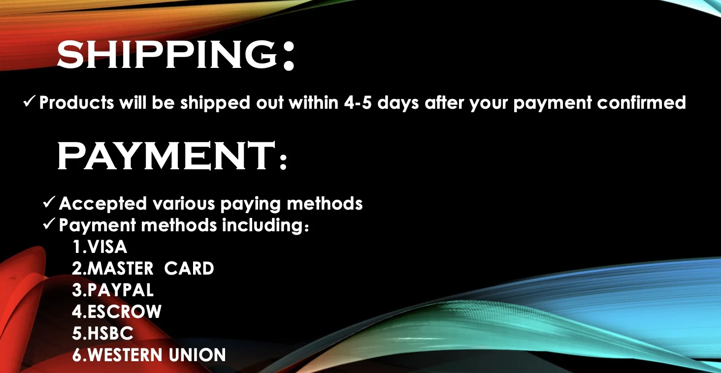 We will ship out your goods within 4-5days after the payment is comfirm,thanks