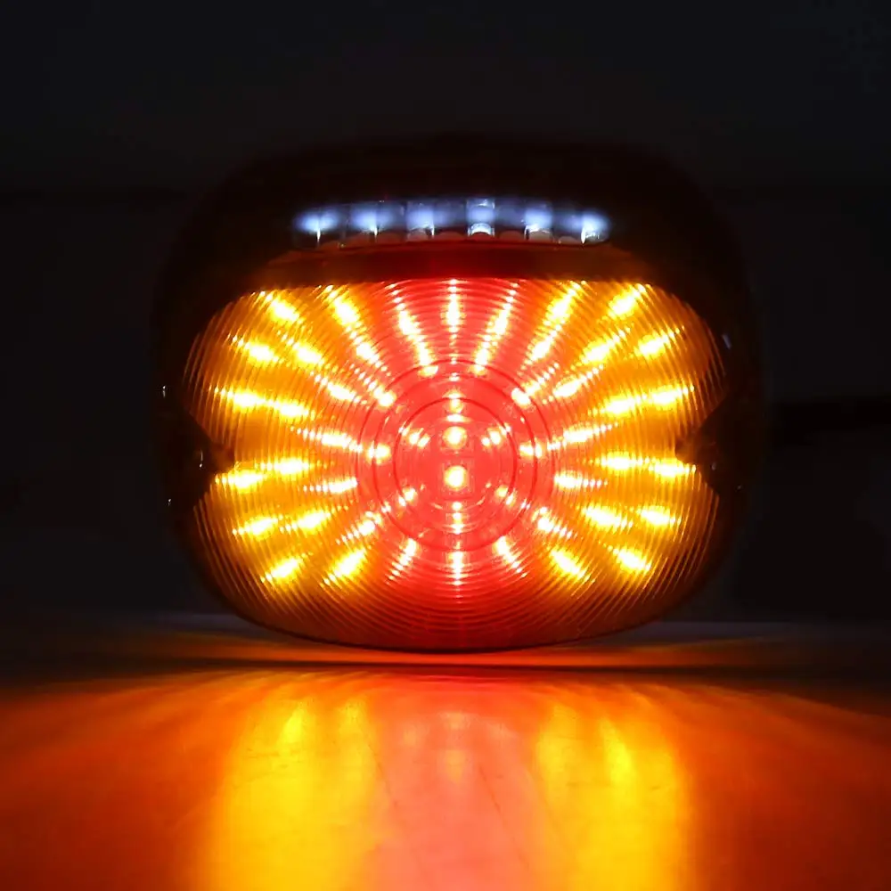 Lens Color: Smoke and red Turn signal light color: Amber Brake running light color: red Size See as picture Voltage: DC 12V LED Quantity: 60 LEDs