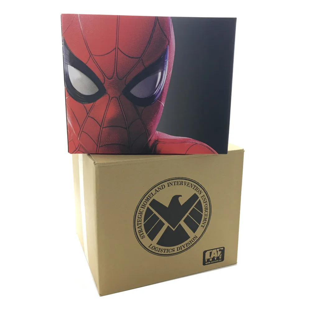Marvel Мстители Человек-паук 1:1 маска глаза Электрический ПВХ фигурку игрушкиРазмер упаковки около28,5*25,5*24 см Размер маски:19*28 см