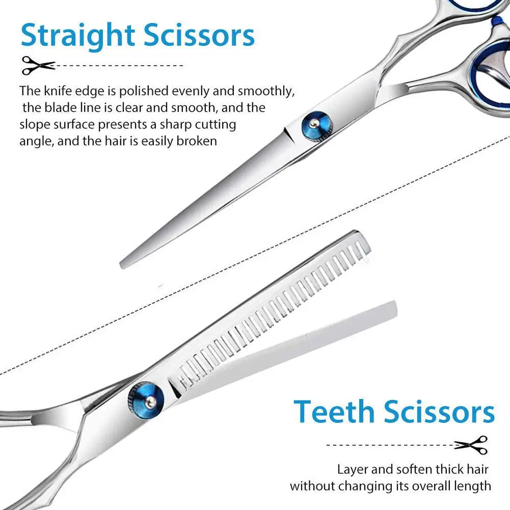 1. Набор ножниц для стрижки волос: набор ножниц для стрижки волос включает ножницы для стрижки волос * 1, филировочные ножницы * 1, гребень для бритвы * 1, зажим * 2, расческа для волос * 1, накидка для парикмахерской * 1, гребень с Острым Хвостом * 1, В комплект входит все необходимое для профессиональной стрижки или создания идеального стильного образа.Сумка для хранения * 1