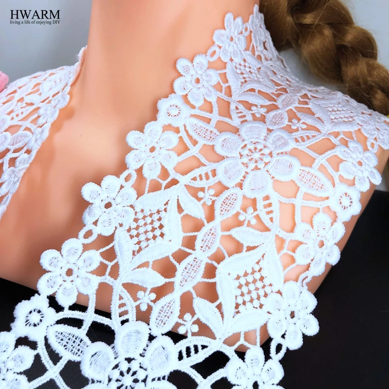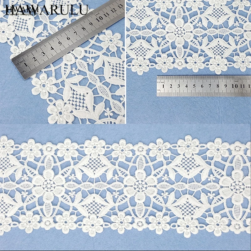 5 двор 10,5 см Свадебные украшения белого цвета в африканском стиле кружевная ткань кружевной отделкой DIY швейных из молочного шелка, вышивкой, окрашенная водорастворимыми красителями, Сетчатое кружевное изысканное двусторонних, Цветочная расцветка, большие штрих-код кружева аксессуары