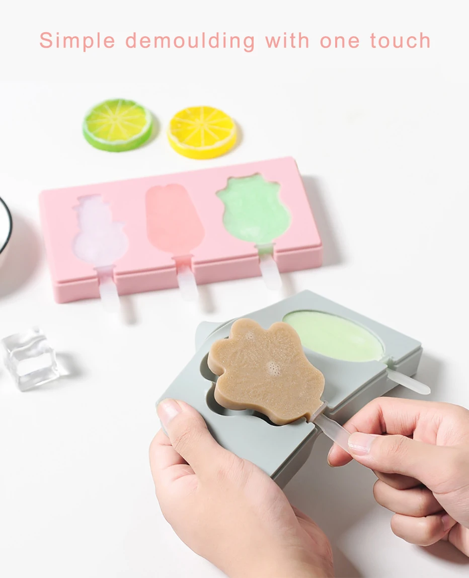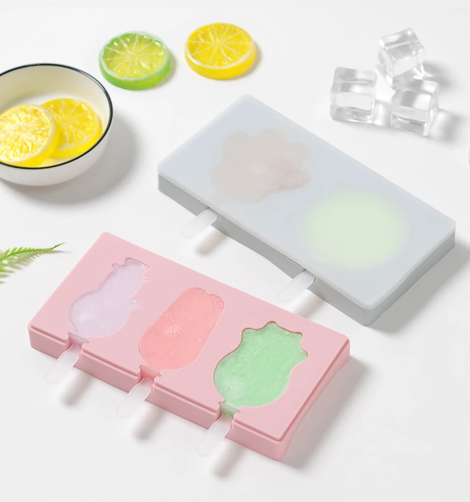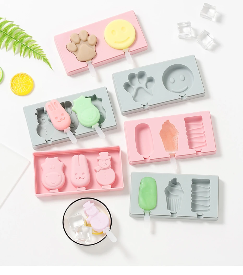 Сиамская форма для мороженого с крышкой, силиконовая форма для мороженого, мультяшная форма с милым изображением, ручная работа, летние кухонные инструменты