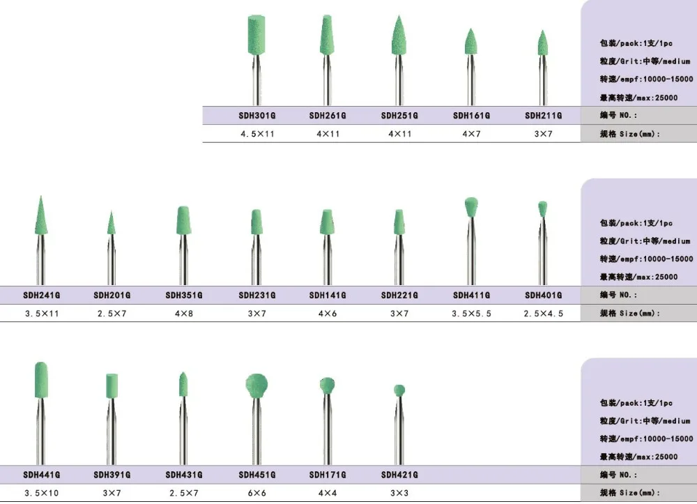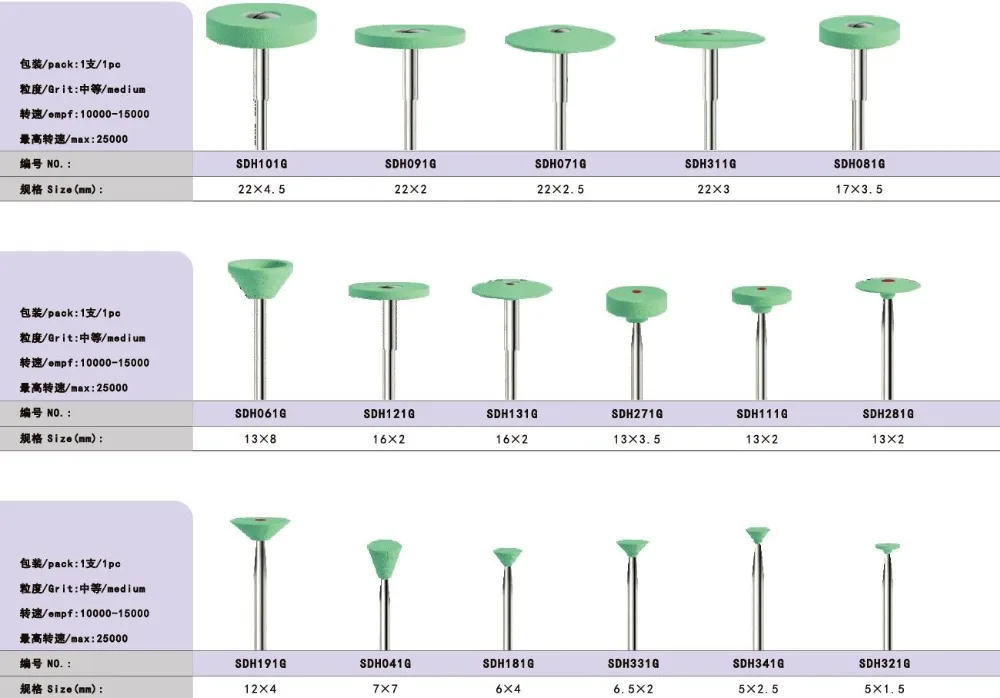 Используется для внутренней короны из циркония, фарфоровой поверхности зуба и короны для быстрой отделки сухого помола без водяного охлаждения.