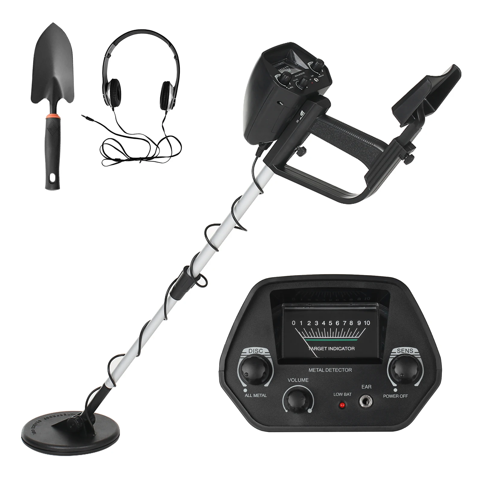 Тип: только металлический искатель/с наушниками/с лопатой/с наушниками и лопатой (опционально)