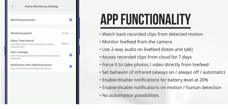 * Поддерживает локальное хранилище Micro SD (максимум 64 Гб). 7-дневная видео сигнализации может быть сохранены свободно в облаке