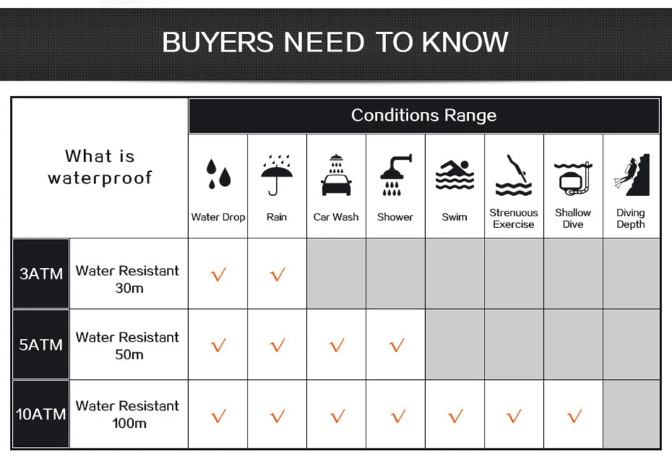 ★Водонепроницаемость 50 метров каждый день★Потливость, мытье рук, дождь, подходит для короткого отдыха, плавания и душа, но не подходит для дайвинга или подводного плавания.
