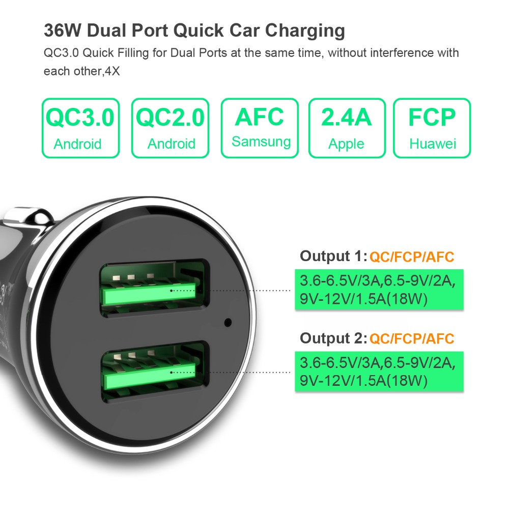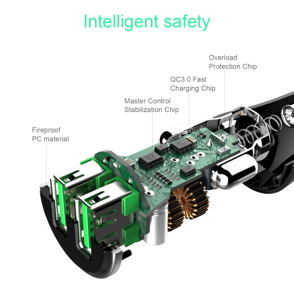 Посылка включает в себя: 1 автомобильное зарядное устройство с двумя портами