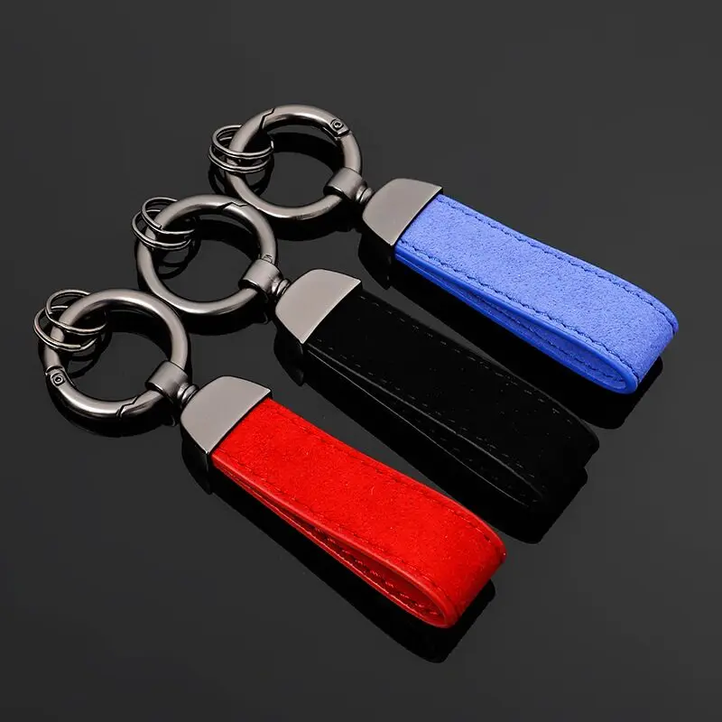 Высококачественный модный металлический замшевый кожаный брелок с круглой пряжкой, роскошная замшевая кожаная Автомобильная цепочка для ключей, брелок для ключей, автомобильный брелок