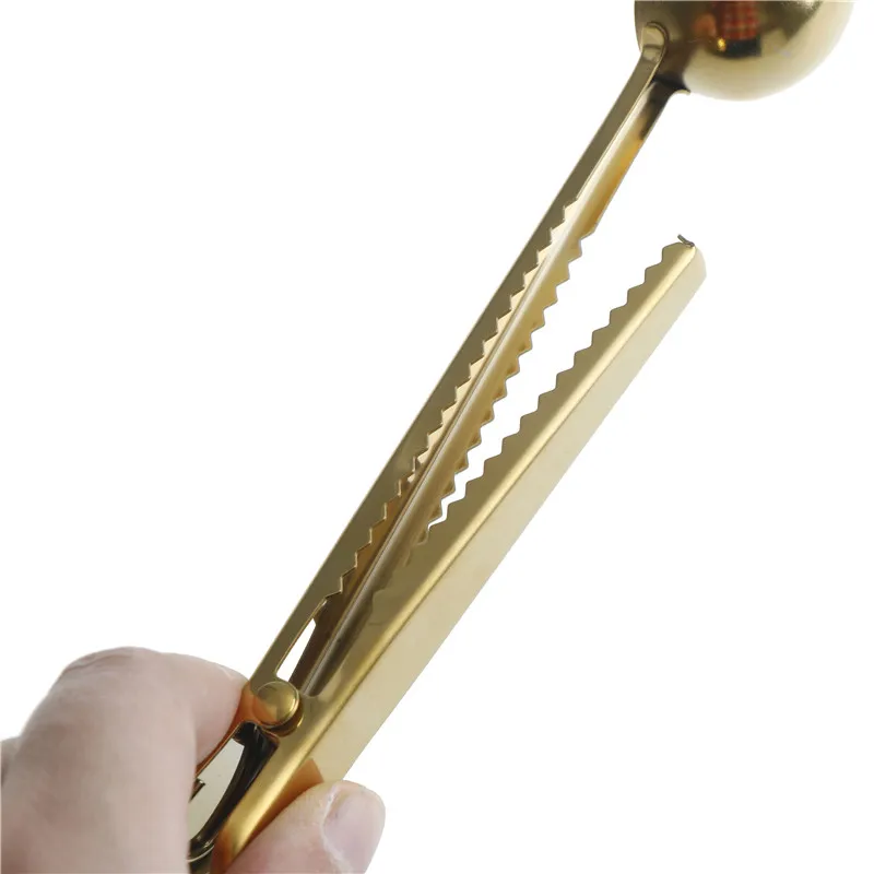Two-in-one Multifunction Coffee Spoon Stainless Steel Kitchen Supplies Scoop With Bag Seal Clip Coffee Measuring Spoon