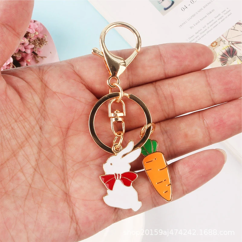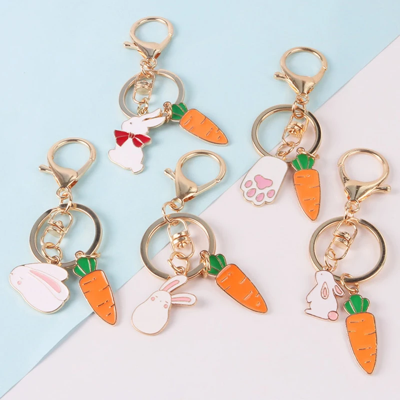 Милый мультяшный брелок для ключей Брелоки для ключей в виде кролика для женщин и девочек с милой морковкой, детский Подарочный Брелок с аниме подвеской на сумку, ювелирные изделия, подарки