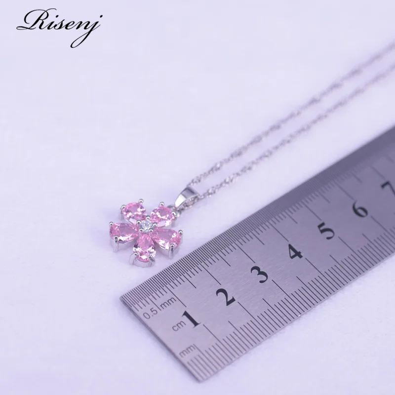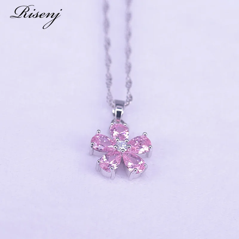 Много цветов цветок принцесса розовый серебро 925 пробы набор украшений для женщин серьги-гвоздики Ожерелье Подвеска костюм комплект ювелирных изделий