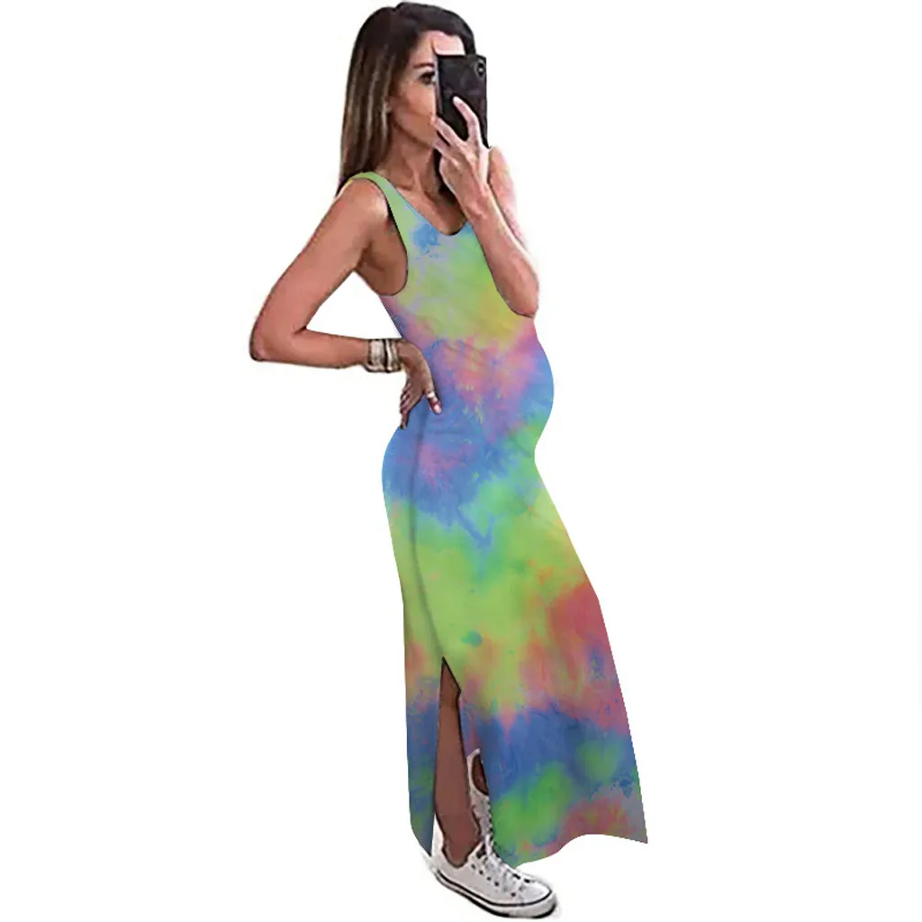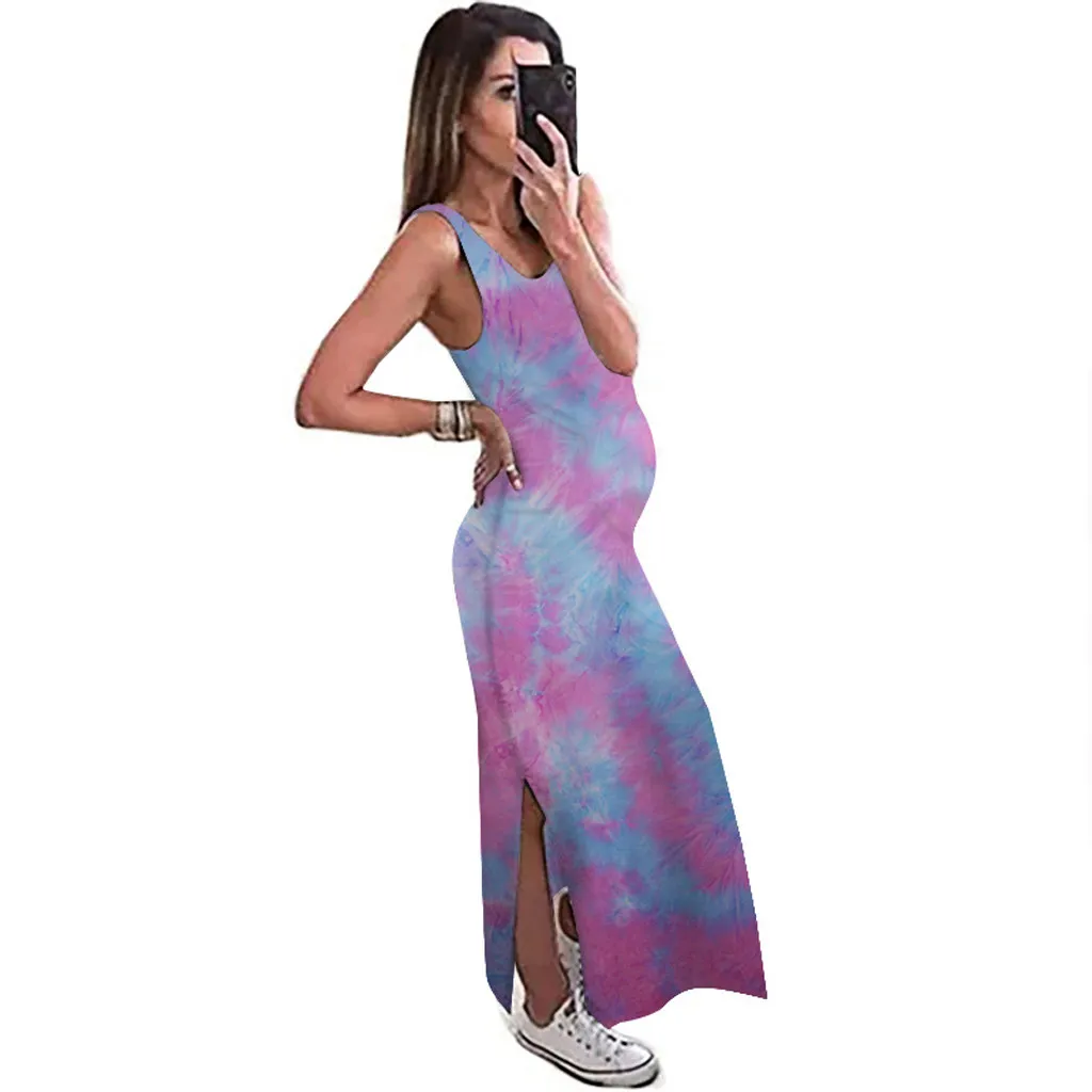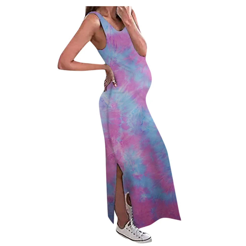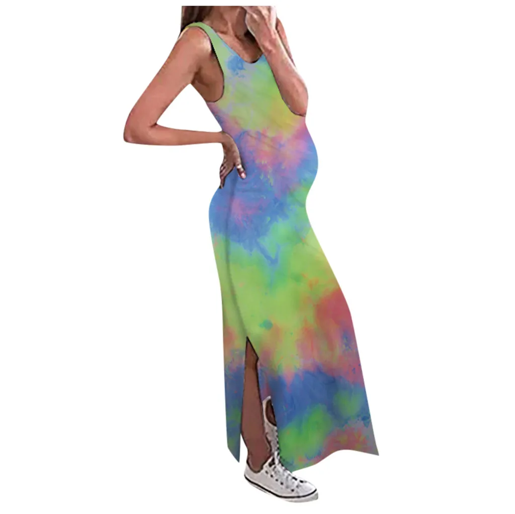 Женское сексуальное Длинное свободное платье без рукавов с принтом красителя для беременных с круглым вырезом