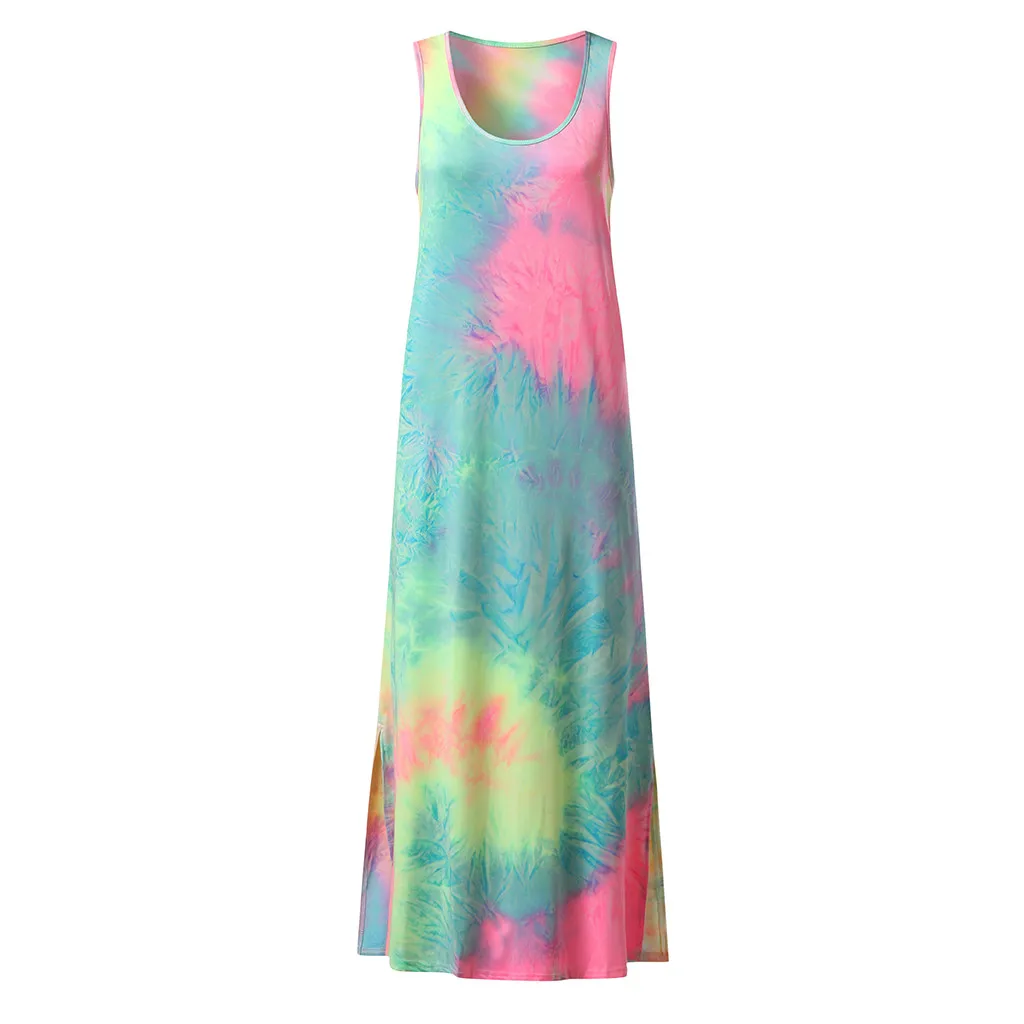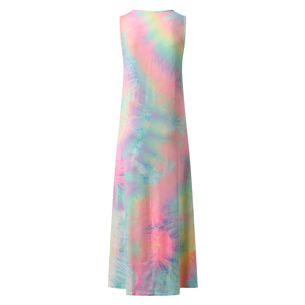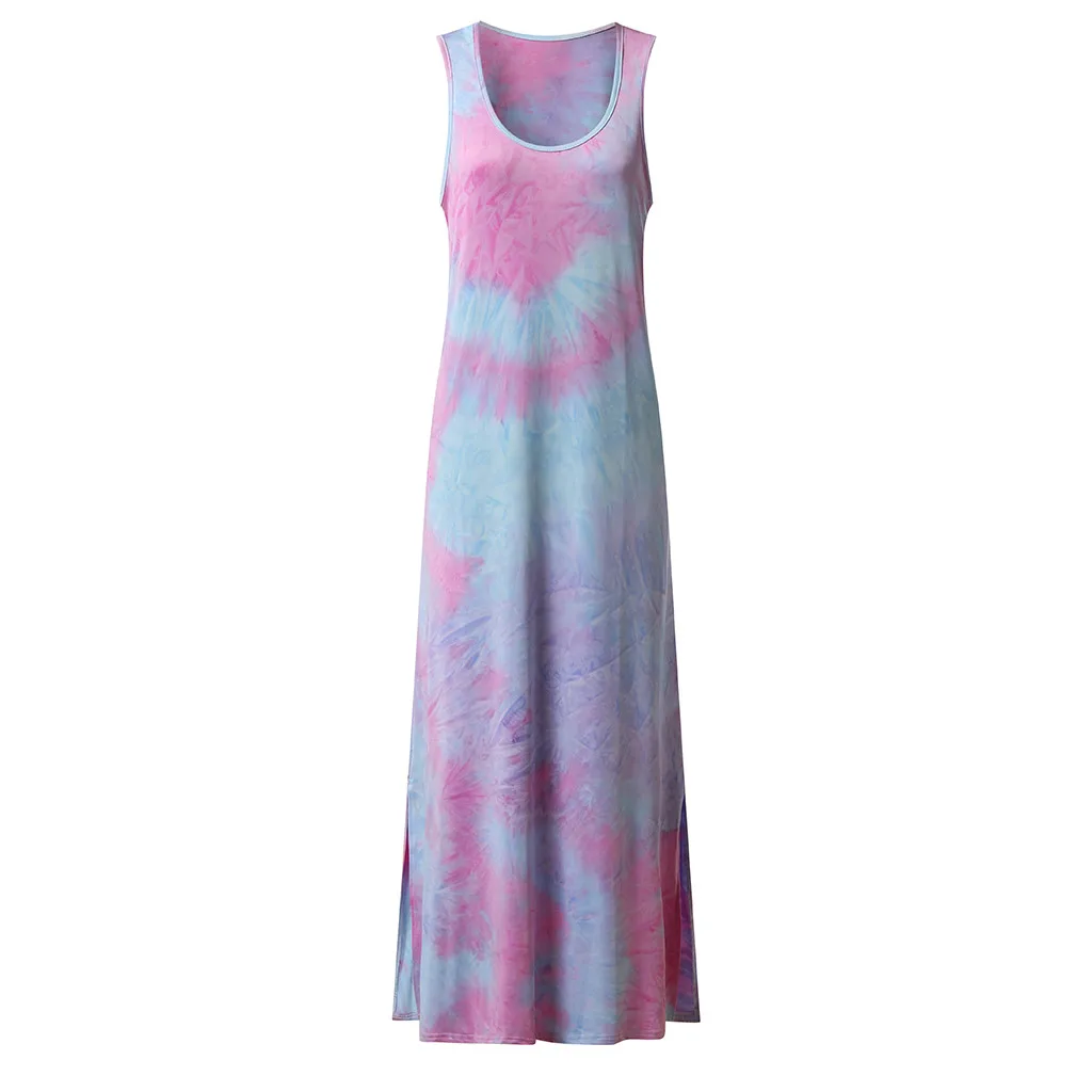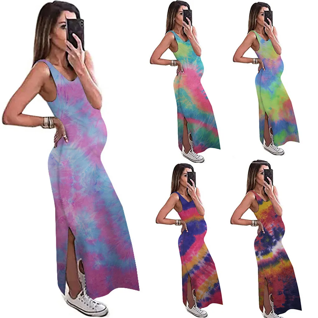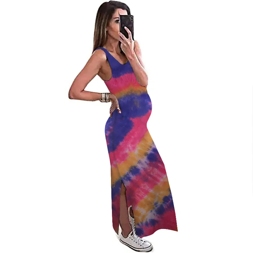 Женское сексуальное Длинное свободное платье без рукавов с принтом красителя для беременных с круглым вырезом