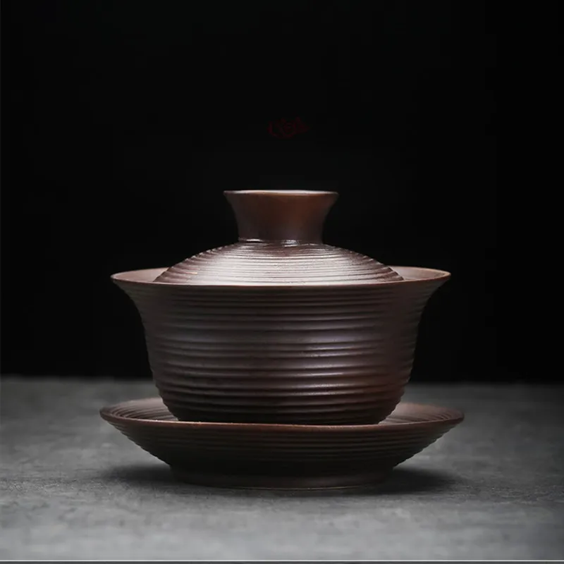 Винтажные дрова керамический гайвань ретро фарфоровые чайные чашки и блюдца миска с крышкой чаша с крышкой