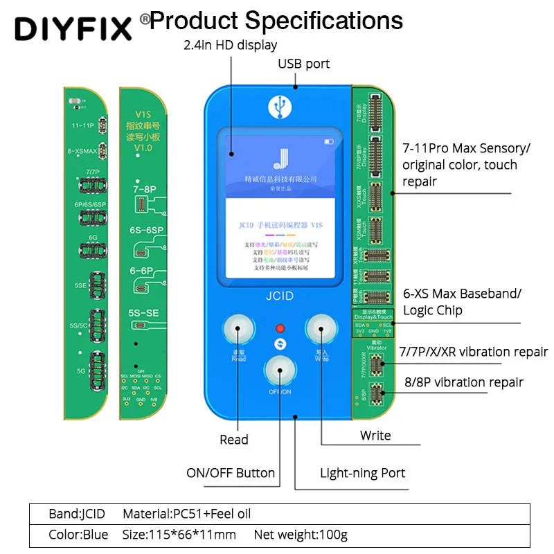 DIYFIX Mobile Phone Chip Photosensitive Programmer Original Color Battery Green Fingerprint Repair Tool For iPhone7-11Pro Max Tester
