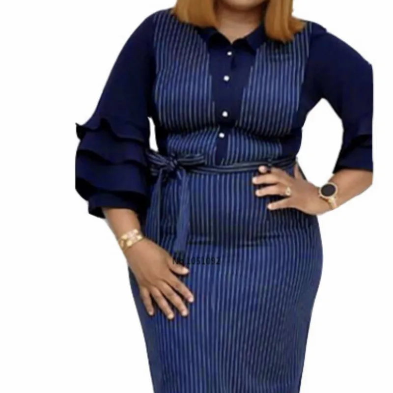 Женское джинсовое платье для офиса, большие размеры, платья из джинсовой ткани с круглым вырезом, Платье До Колена, Vestidos, платье в африканском стиле, весна-лето 2020US $23,00