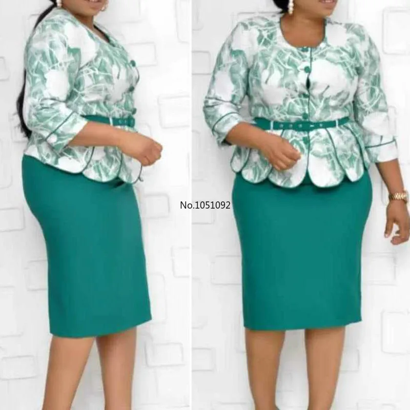 2020 Новое поступление сексуальные африканские женские принты из полиэстера размера плюс комплекты из двух предметов пальто и юбка S-3XLUS $23,00