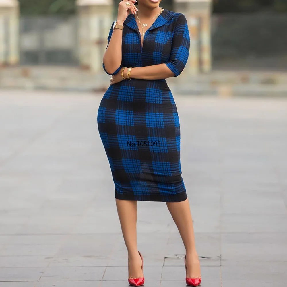 Женское облегающее платье в синюю клетку, летнее винтажное офисное платье средней длины, платье в африканском стиле 2020, женское платье в стиле ретро с высокой талиейUS $20,78