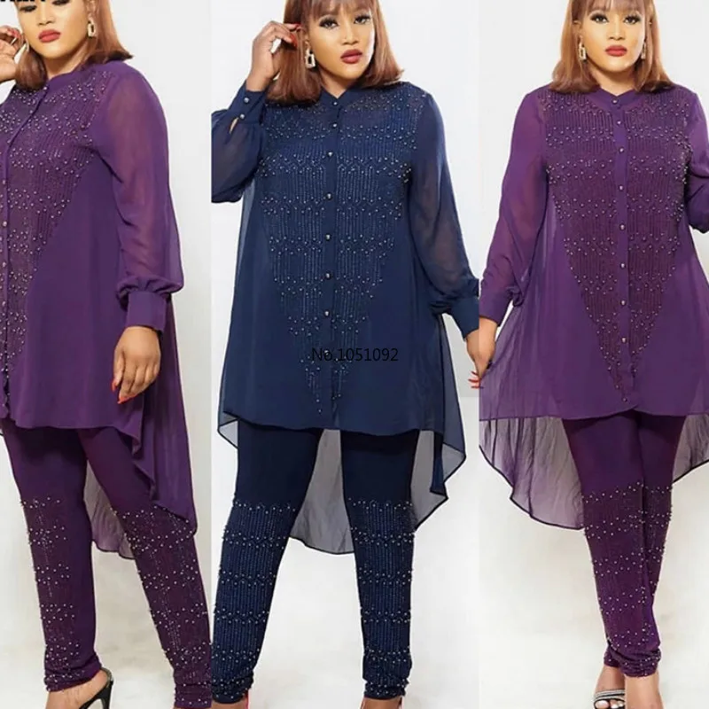 Африканские женские комплекты, однотонный блейзер с длинным рукавом, пиджак, брюки, костюмы, Офисная Леди, элегантный комплект из 2 предметов, деловые наряды, африканская одеждаUS $29,99