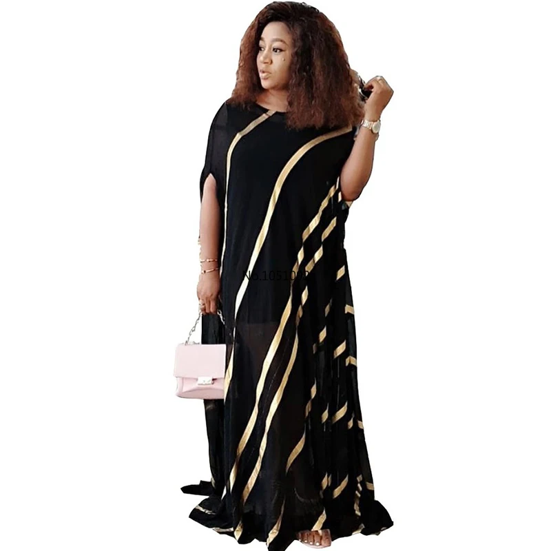 2020 женское летнее свободное Черное длинное платье с круглым вырезом и рукавами «летучая мышь», платья в африканском стиле размера плюсUS $14,77